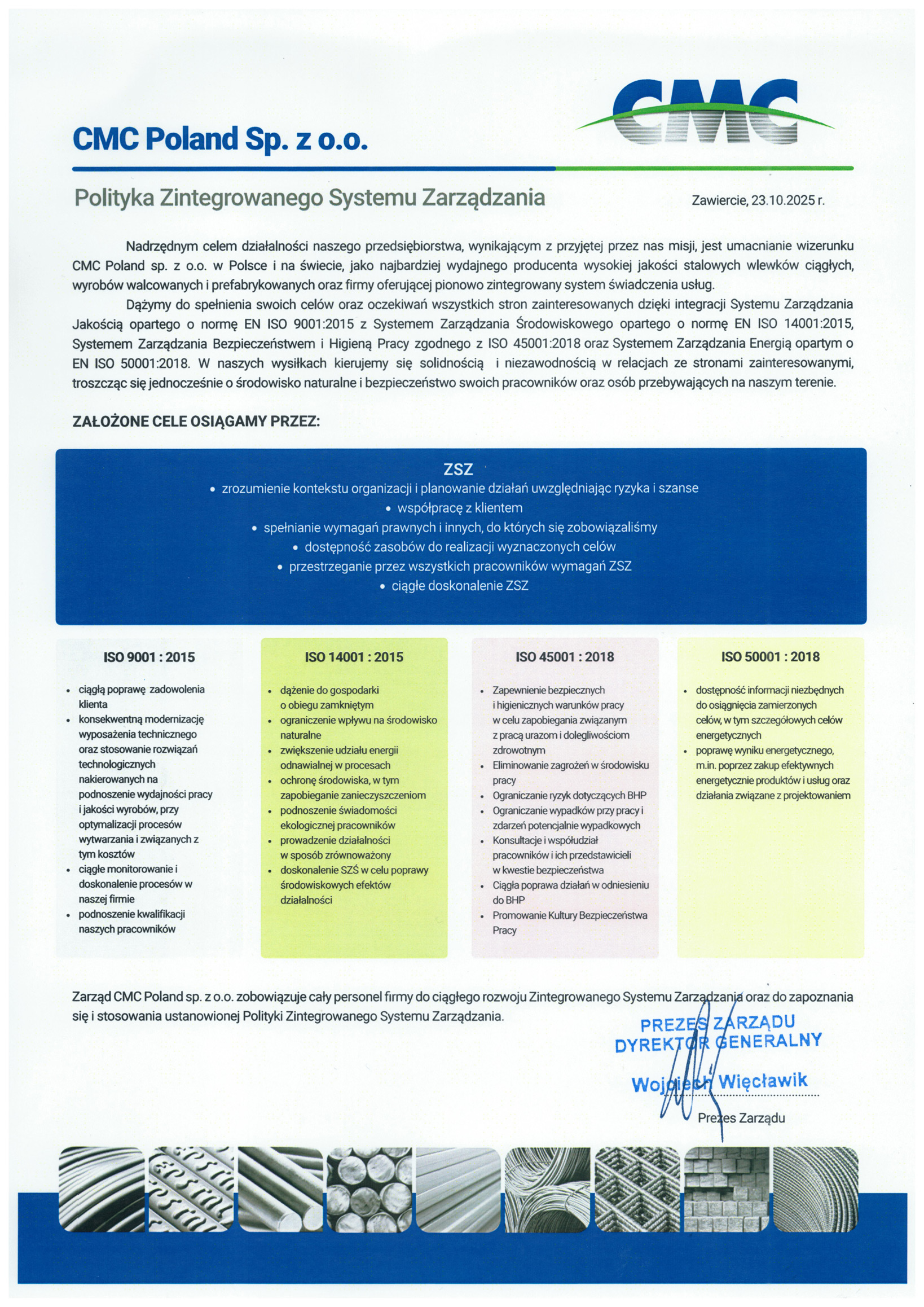 CMC Poland Sp. z o.o. betreibt ein hochmodernes Stahlwerk in Zawiercie, Polen, und hat seine Position als führender in- und ausländischer Lieferant mit über 120 Jahren Erfahrung im Walzwerkbetrieb aufgebaut. Unser großes Vertriebsnetz ermöglicht es uns, auf unseren Märkten Stahlprodukte zu wettbewerbsfähigen Preisen herzustellen sowie zu transportieren und zwar auf einer Qualitätsstufe, die unsere Kunden gewohnt sind.