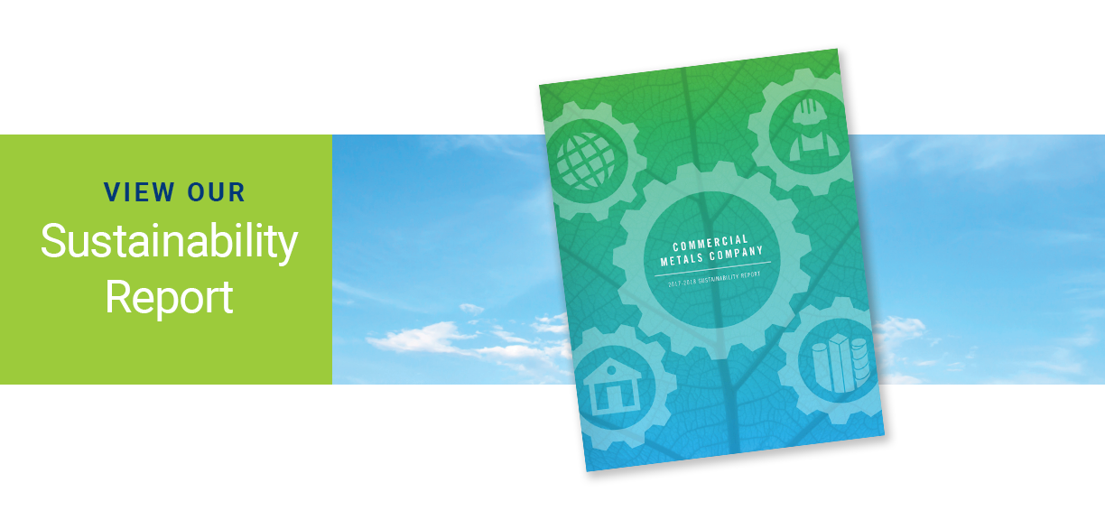 As part of Commercial Metals Company’s Guiding Principles, CMC takes seriously the responsibility that comes with being a good corporate citizen. We’re dedicated to making a positive impact in our local communities where we live and work. And at the core of what we do to better our communities, we encourage recycling, recovery and reuse of residual materials.